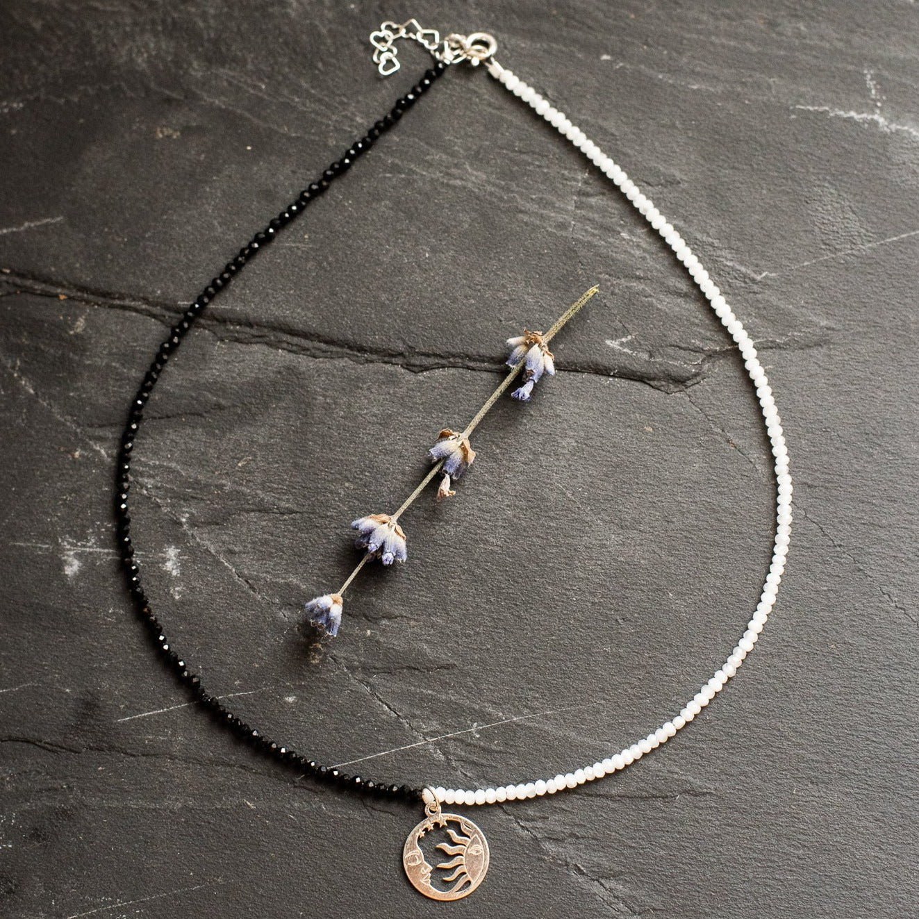 Balance & Protection - Piatra Lunii si Turmalina neagra - choker cu cristale naturale si argint